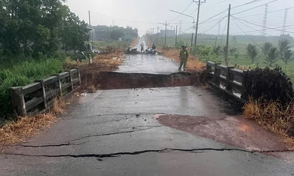 Trước đó, vào tối qua, xảy ra mưa lớn kéo dài khiến một đoạn cầu rộng khoảng 4m, dài khoảng 6m trên đường số 40, thuộc khu phố Minh Thành 5, phường Chơn Thành bị sập, lún. Rất may thời điểm xảy ra sự cố không có người qua lại. Không có người, phương tiện giao thông bị thiệt hại.