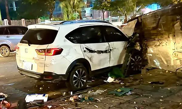 Khi đến trước tòa nhà CT7, ô tô va chạm với xe máy do anh Đ.Q.V. (sinh năm 1984), trú Hà Nội cầm lái rồi tiếp tục tông vào 4 xe máy khác. Cú va chạm cực mạnh khiến nhiều xe hư hỏng. Nhiều người bị thương nằm tại hiện trường. Mảnh vỡ từ các xe văng khắp mặt đường.
