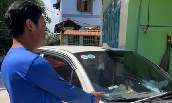 Bực tức, đối tượng này chạy xe về nhà lấy cây dao rựa ra chém 4 nhát vào kính chắn gió ô tô làm vỡ kính và hư hỏng xe.