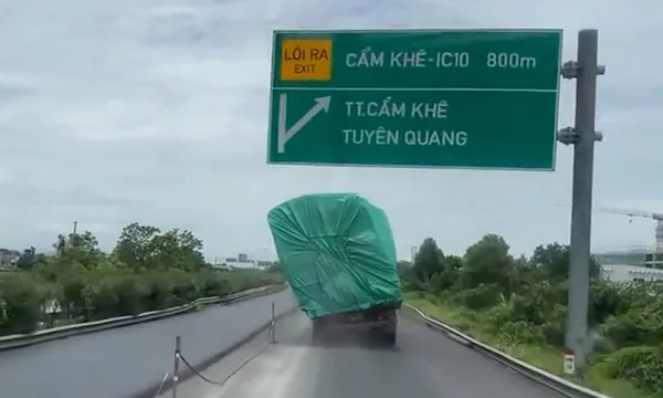 Trước đó, trên mạng xã hội xuất hiện đoạn clip ghi lại hình ảnh một chiếc ô tô tải chở hàng cao quá thùng, nghiêng hẳn sang một bên như sắp đổ, di chuyển với tốc độ cao trên cao tốc, gây lo lắng cho nhiều người dân. Ngay sau khi tiếp nhận thông tin phản ánh, lực lượng CSGT cao tốc số 1 đã khẩn trương xác minh và truy tìm phương tiện vi phạm.