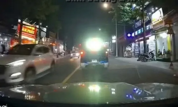 Tối 3/9, ông T.N.H. điều khiển xe bán tải trên đường Cách Mạng Tháng Tám, phường Thủ Dầu Một, TPHCM. Camera hành trình từ một xe phía sau ghi lại cảnh xe liên tục nháy đèn pha từ đèn gắn trên nóc, gây chói mắt và ảnh hưởng tầm nhìn các phương tiện cùng chiều.