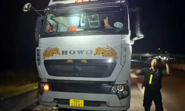 Vào tối ngày 12/11, xe đầu kéo mang biển số 98H-032.61 chạy trên cao tốc Cam Lâm-Vĩnh Hảo thì lực lượng CSGT ra tín hiệu dừng kiểm tra. Phát hiện CSGT, tài xế cho xe tấp vào lề và gác 2 chân lên táp lô giống như đang ngủ và lực lượng cảnh sát phải gõ cửa xe, tài xế mới mở cửa xuống xe để kiểm tra.