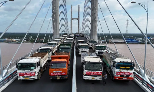 Theo đó, hàng trăm xe tải có tải trọng từ 25-30 tấn đã được huy động, xếp thành từng hàng theo sơ đồ tải trọng tại các vị trí được ấn định trên toàn tuyến cầu. Đây là quy trình bắt buộc theo quy định kỹ thuật để kiểm chứng chất lượng, khả năng chịu tải và ổn định kết cấu sau khi hoàn tất xây dựng.