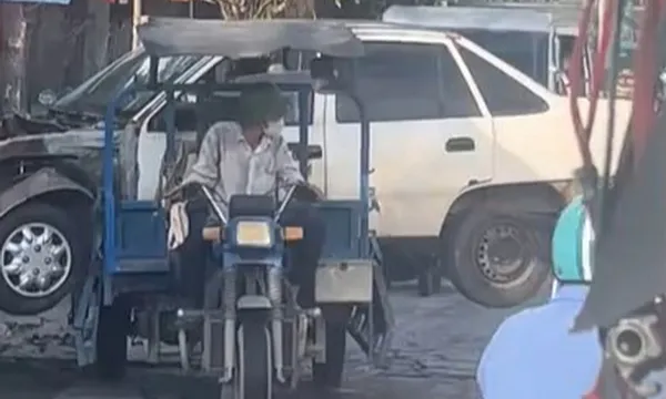 Trước đó, ngày 22/8, trên mạng xã hội xuất hiện đoạn clip ghi lại cảnh xe ba gác chở theo một vỏ ô tô cũ cồng kềnh phía sau, chiếm hết mặt đường, khiến nhiều phương tiện không thể lưu thông, gây ùn ứ kéo dài.