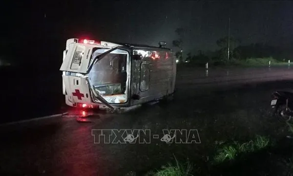 Cú va chạm mạnh khiến cả hai phương tiện bị hư hỏng nặng. Tại hiện trường, xe cứu thương nằm lật nghiêng, ô tô con bể nát hoàn toàn phần đầu xe. Vụ tai nạn làm 4 người bị thương. Trong đó một phụ nữ là người thân của nam bệnh nhân bị thương khá nặng.