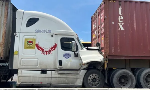 Bất ngờ, xe container biển số 50H-764.78 không kịp xử lý đã tông vào đuôi xe container 50H-750.94, đẩy phương tiện này lao về phía trước, húc vào xe bồn. Cú va chạm dây chuyền khiến xe bồn tiếp tục tông vào đuôi xe container 50H-243.01.