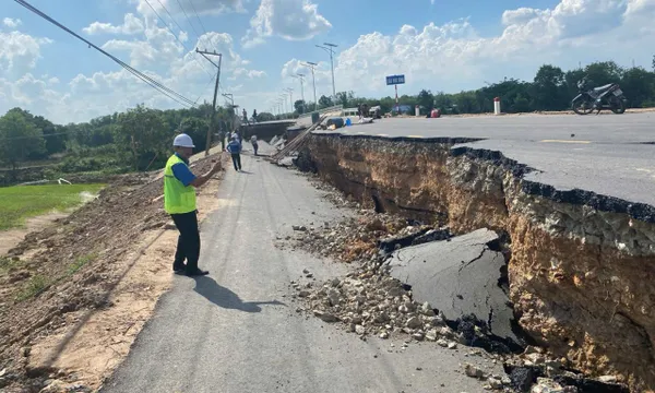 Vụ sụt lún nghiêm trọng xảy ra vào sáng 11/5 khiến đoạn đường dẫn cầu dài 35m sụp sâu 3m, gây tai nạn giao thông. Nguyên nhân ban đầu được xác định do mưa lớn kéo dài trên nền đất yếu.