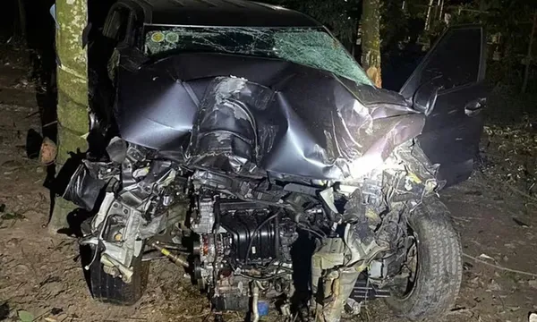 Tại hiện trường, chiếc xe ô tô biến dạng phần đầu, nhiều mảnh vỡ văng khắp mặt đường. Chiếc xe máy hư hỏng nặng, nằm cách ô tô vài chục mét.