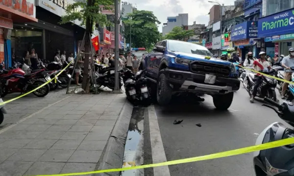 Thời điểm trên xe bán tải biển số 30F-498.xx do ông N.V.T. (SN 1971, trú tại phố Nguyễn Tuân, Hà Nội) điều khiển đang di chuyển theo hướng về đường Lê Duẩn thì bất ngờ mất kiểm soát, lao về phía trước, va chạm với 8 xe máy, 1 xe máy điện và một người đàn ông đang đứng dưới lòng đường.