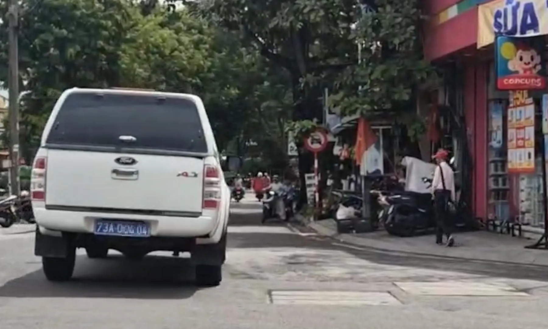 Vào khoảng 10h22 ngày 17/9, xuất hiện clip của người dân ghi lại hình ảnh một ô tô biển xanh mang biển kiểm soát 73A-XXX lưu thông ngược chiều trên đường Phan Chu Trinh, đoạn có biển báo “Cấm ô tô” được đặt rõ ràng phía trước.