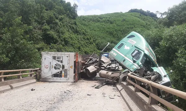 Trước đó, vào khoảng 12h trưa 12/7, xe ô tô đầu kéo mang biển số 34C-098.xx kéo theo rơ-moóc biển số 34R-003.xx, lưu thông trên tuyến QL12A theo hướng từ Cửa khẩu quốc tế Cha Lo về QL1. Khi qua cầu Trọng Hóa 2 (xã Dân Hóa, tỉnh Quảng Trị), xe đầu kéo bị lật nghiêng, phần đầu xe đâm vào lan can cầu.