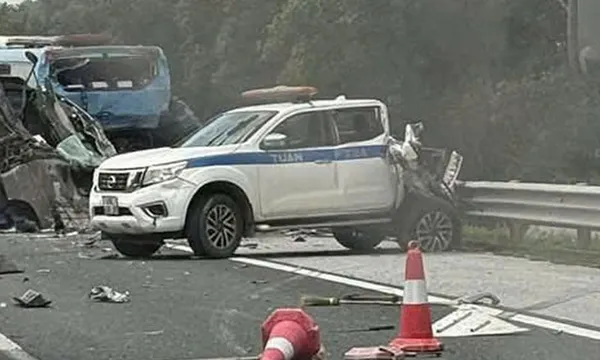 Xe đầu kéo tông xe tuần tra trên cao tốc Hà Nội - Hải Phòng, 2 người tử vong