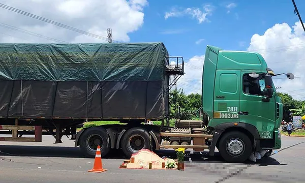 Cú va chạm mạnh khiến ông B tử vong tại chỗ. Tại hiện trường, xe máy nằm lọt dưới gầm xe đầu kéo.