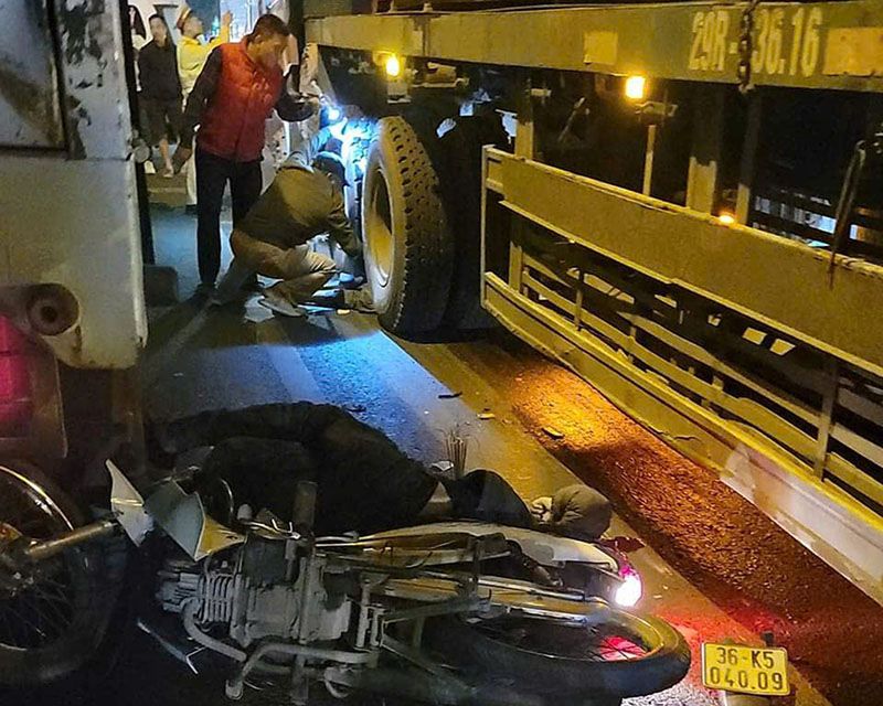 Cùng lúc này, xe máy mang biển số 36K5-040.09 trên xe có hai người đàn ông là Phạm Tuấn C và Trần Hữu H, quê ở Thanh Hóa và Hà Nam chạy vào giữa hai xe tải nói trên.