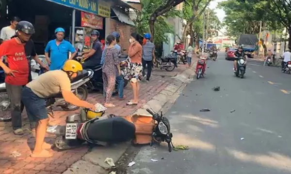 Người phụ nữ lái xe máy khoảng 45 tuổi bất ngờ bị một xe ôtô du lịch biển số TPHCM chạy với tốc độ cao tông trúng.