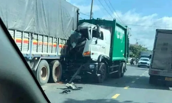 Cú đụng mạnh khiến đầu xe rác biến dạng, người nam phụ xe rác bị mắc kẹt trong cabin, tử vong tại chỗ.