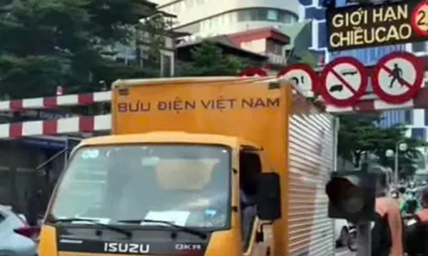 Theo đó, chiều 16/10, mạng xã hội có đăng tải đoạn clip ghi lại cảnh 1 xe ôtô tải mang logo Bưu điện Việt Nam khi đi lên cầu vượt Thái Hà - Chùa Bộc trong khung giờ cao điểm, đã bị kẹt vì chiều cao vượt quá thanh hạn chế chiều cao của cầu, gây mất an toàn giao thông và làm cản trở giao thông tại khu vực.
