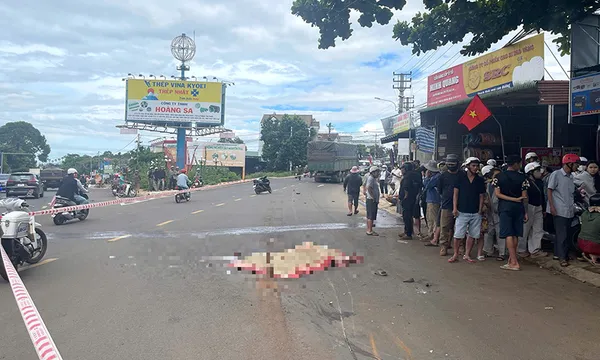 Cú va chạm mạnh, khiến anh Đ bị xe tải cán tử vong tại chỗ. Tại hiện trường, chiếc xe máy bị cuốn vào gầm xe tải.