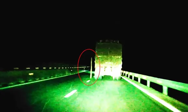 Vào buổi tối tầm nhìn hạn chế, chiếc xe tải lớn chở theo nhiều thanh gỗ chạy với tốc độ cao. Bất ngờ một thanh gỗ dài bất ngờ rơi ra từ xe tải khiến được một xe có gắn camera hành trình phía sau ghi lại. May mắn lái xe đi sau kịp xử lý tình huống, không bị thanh gỗ đe dọa. Người tài xế lái xe tải đánh rơi thanh gỗ tiếp tục đi tiếp mà không hề hay biết.