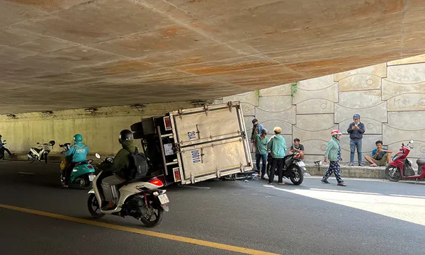 Vụ tai nạn xảy ra chiều 16/6 trên đường song hành xa lộ Hà Nội, phường Linh Trung, TP Thủ Đức, TPHCM khi một chiếc xe tải đi vào đường cấm đã va vào thành cầu của hầm chui rồi lật nhào, đè trúng 2 xe máy.