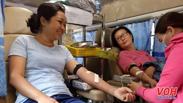 Người dân tham gia chương trình Hiến máu nhân đạo.