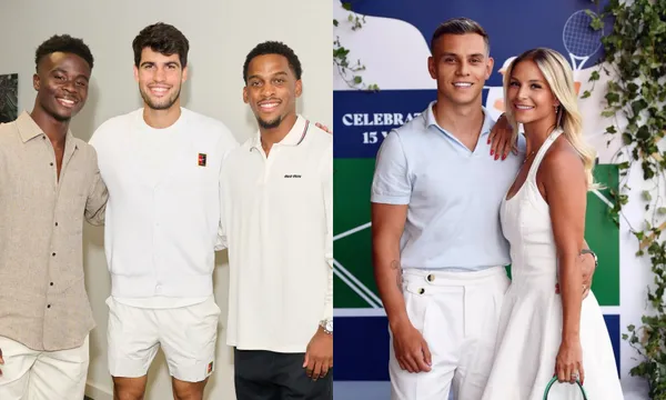 Trước thềm ngày hội quân của Arsenal, bộ đôi ngôi sao Bukayo Saka - Jurrien Timber đã tranh thủ thời gian dự khán giải quần vợt danh tiếng Wimbledon đang diễn ra tại London. Saka chăm chú theo dõi trận đấu bên cạnh bạn gái Tolami Benson. Cả hai bắt đầu hẹn hò từ năm 2020 nhưng 4 năm sau mới công khai chuyện tình, khi Tolami xuất hiện trong nhóm WAGs cổ vũ đội tuyển Anh ở Vòng chung kết EURO 2024.Ngòi nổ người Bỉ Leandro Trossard cũng góp mặt cùng bà xã Laura Hilven. Cặp đôi diện trang phục trắng cổ điển đầy tinh tế.Một thành viên Arsenal khác xuất hiện trên khán đài là trung vệ người Ý Riccardo Calafiori. Saka cùng Timber được tạo điều kiện vào khu vực đặc biệt chụp ảnh cùng đương kim vô địch Wimbledon và là hạt giống số 2 năm nay, Carlos Alcaraz. Saka gửi lời chúc bảo vệ thành công ngôi vương đến tay vợt Tây Ban Nha vừa giành vé vào Bán kết: "Thật hân hạnh khi được gặp gỡ. Chúc cậu may mắn trong phần còn lại của giải đấu". Saka sửa soạn tập luyện cùng đồng đội mới Martin Zubimendi trong những ngày tới. Arsenal đang đẩy nhanh công cuộc mua sắm để các tân binh kịp góp mặt ở tour du đấu sắp tới. Giám đốc thể thao Andrea Berta vừa chào đón chữ ký tiếp theo là Christian Norgaard tại đại bản doanh Sobha Realty.