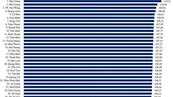 Vị trí thứ 2 và 3 thuộc về Bắc Giang và thành phố Hải Phòng với mức tăng trưởng dự báo ước đạt lần lượt là 10,94% và 9,94%.