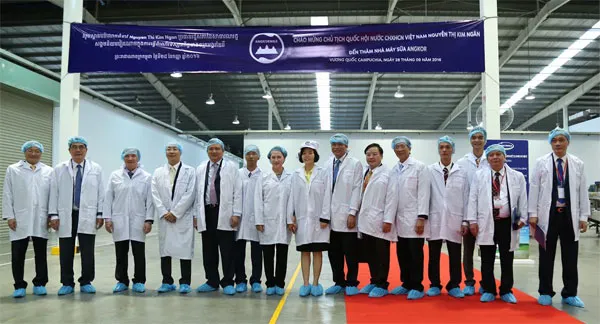 Bà Nguyễn Thị Kim Ngân - Ủy Viên Bộ Chính trị, Chủ tịch Quốc hội cùng đoàn đại biểu cấp cao Quốc hội Việt Nam đến thăm nhà máy sữa Angkor.