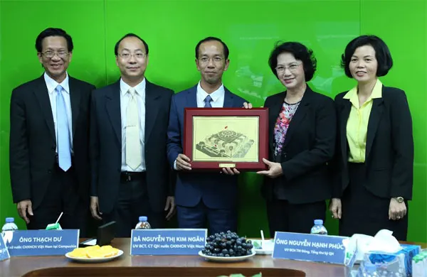 Chủ tịch Quốc hội Nguyễn Thị Kim Ngân tặng quà lưu niệm cho ông Mai Hoài Anh – Chủ tịch Hội đồng Quản trị công ty sữa Angkor.