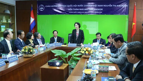 Sau khi lắng nghe phần trình bày của Lãnh đạo công ty sữa Angkor, Chủ tịch Quốc hội Nguyễn Thị Kim Ngân đã biểu dương sự nỗ lực của tập thể lãnh đạo và cán bộ - công nhân viên nhà máy: “Ngoài kết quả kinh doanh tốt, đóng góp ngân sách nhà nước và tạo công ăn việc làm cho người dân Campuchia. Điều ấn tượng nhất là Vinamilk đã đem đến cho Campuchia một ngành sữa, một nhà máy sữa đầu tiên, đặt nền móng cho sự phát triển của ngành sữa tương lai. Đây cũng là một nhu cầu rất cần thiết cho trẻ em và nhân dân Campuchia. Chúng ta cũng thấy đây là 1 dự án rất thành công của sự hợp tác kinh tế đầu tư giữa Việt Nam và Campuchia. Xin chúc mừng công ty Vinamilk và đối tác BPC tại Campuchia, tôi tin tưởng nhà máy sữa Angkor sẽ tiếp tục thành công trong tương lai".