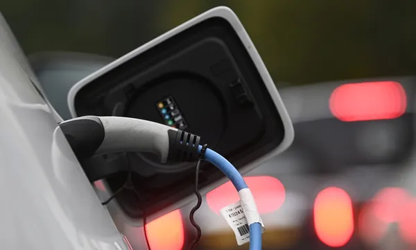 Một chiếc ô tô điện đang được sạc tại một trạm sạc EV ven đường, London - Ảnh: Reuters