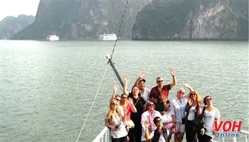 Du khách quốc tế thích thú chụp ảnh kỷ niệm khi tham quan và trải nghiệm ở Di sản thiên nhiên thế giới Vịnh Hạ Long