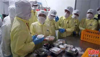 Đoàn công tác Ban chỉ đạo cuộc vận động “Người Việt Nam ưu tiên dùng hàng Việt Nam” tham quan dây chuyền chế biến thực phẩm ăn liền của công ty Sài Gòn Food.