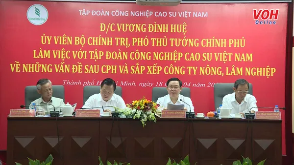 Đánh giá cao nỗ lực tái cơ cấu của tập đoàn Cao su Việt Nam, Phó Thủ tướng Vương Đình Huệ yêu cầu, Tập đoàn tiếp tục đổi mới sản xuất, kinh doanh, tập trung đầu tư vào các ngành nghề, sản phẩm có lợi thế và giá trị gia tăng cao. Đồng thời quyết liệt hơn trong việc đổi mới sắp xếp nông lâm trường, đặc biệt là phải có phương án kiểm soát, quản lý và sử dụng đất đai hợp lý, hiệu quả.