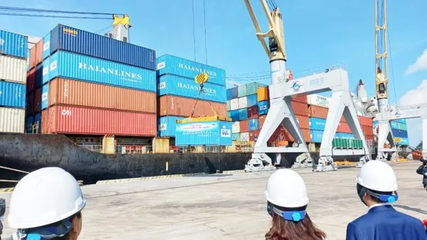 Dịp này, cảng Chân Mây đón chuyến tàu container đầu tiên Hải An View với sức chứa 1.577 TEU, mở ra tuyến dịch vụ vận tải container Hải Phòng-Chân Mây-Thành phố Hồ Chí Minh, định tuyến 2 chuyến/tuần của hãng tàu Hải An.