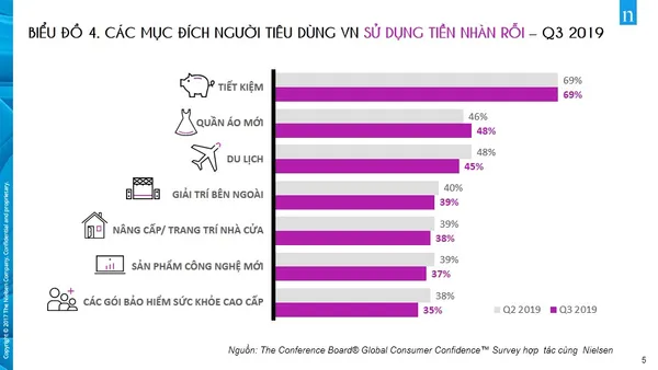 Đáng chú ý, theo khảo sát của Nielsen, người Việt Nam đang dành ít tiền hơn cho du lịch, giải trí bên ngoài và sản phẩm công nghệ mới.