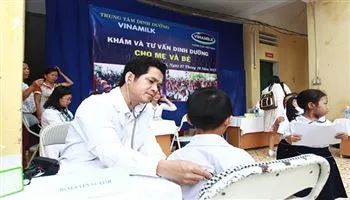Bác sĩ từ Trung tâm tư vấn dinh dưỡng tới khám và tư vấn cho các em học sinh và thầy cô giáo trường Tiểu học Nam Phương Tiến A.