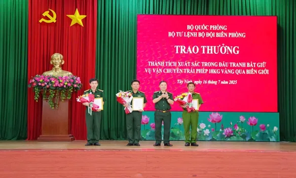 Ngày 16/7, tại tỉnh Tây Ninh, Bộ Tư lệnh Bộ đội Biên phòng đã tổ chức trao thưởng cho các tập thể, cá nhân có thành tích xuất sắc trong chuyên án bắt giữ vụ vận chuyển trái phép 18 kg vàng qua biên giới, góp phần bảo vệ an ninh kinh tế và chủ quyền quốc gia.
