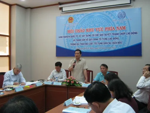 Đây là vần đề được đặt ra tại hội thảo: “Kinh nghiệm quốc tế về xây dựng cơ chế tranh chấp lao động và tham vấn về tố tụng lao động trong Bộ Luật Tố tụng dân sự (sửa đổi)" tổ chức vào sáng 10/9, tại TP.HCM do Ủy ban về các vấn đề xã hội của Quốc hội phối hợp với Tổ chức lao động quốc tế (ILO), Bộ Lao động – Thương binh và Xã hội và Tổng Liên đoàn Lao động Việt Nam cùng với Tòa án Nhân dân Tối cao tổ chức.