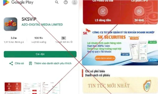 Các nạn nhân được mời tham gia khóa học đầu tư chứng khoán online trên ứng dụng có tên SKSVIP có giao diện giống hệt như các website, ứng dụng chơi chứng khoán chính thống với các mã chứng khoán, chỉ số, mệnh giá đúng như trên thị trường chứng khoán thực.