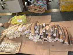 Cơ quan Hải quan thực hiện khám xét vụ nhập lậu ngà voi hôm 10/6 - Ảnh: