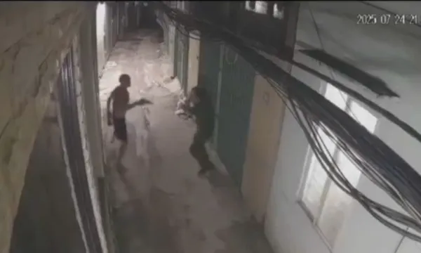 Hình ảnh trích xuất từ camera an ninh khu vực cho thấy, đối tượng đã rút súng, chĩa về phía cán bộ công an rồi nổ súng bắn xuống đất để uy hiếp. Sau đó, nghi phạm nhanh chóng bỏ trốn khỏi hiện trường.