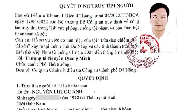 Ngày 2/9, Cơ quan Cảnh sát điều tra Công an TP Đà Nẵng cho biết đã ra quyết định truy tìm đối tượng Nguyễn Phước Anh (SN 1990, trú phường An Khê, TP Đà Nẵng) để điều tra về hành vi lừa đảo chiếm đoạt tài sản.
