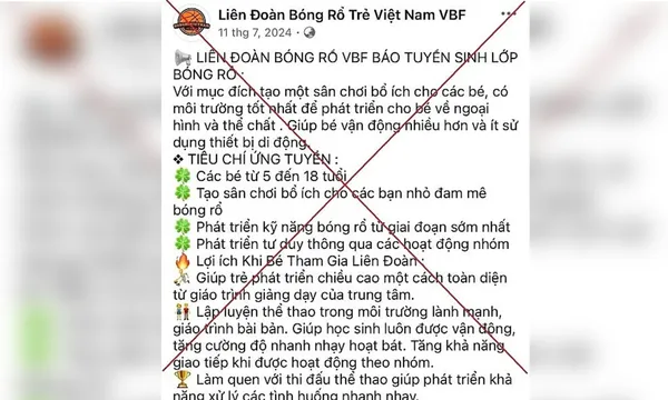 Ngày 12/9 vừa qua, một phụ huynh ở TP Đà Nẵng phản ánh đã bị chiếm đoạt hơn 100 triệu đồng khi đăng ký khóa học bóng rổ cho con thông qua một trang Facebook mạo danh “Liên đoàn bóng rổ Việt Nam”.