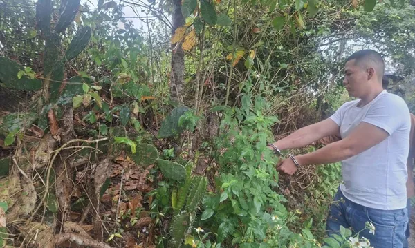 Sau khi khống chế người phụ nữ cướp tài sản, Toàn phi tang tang vật liên quan tại bụi cây ven đường - Ảnh CA