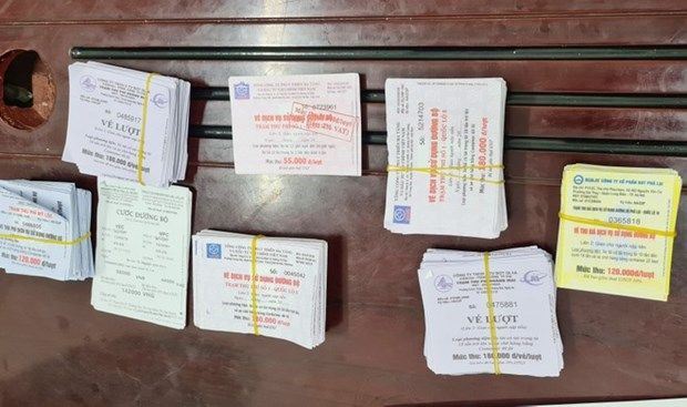 Đối tượng Triệu Văn Quang (sinh năm 1986, trú tại thôn Thọ Am, xã Liên Ninh, Thanh Trì, Hà Nội) mang theo người 500 vé dịch vụ cước phí đường bộ gồm: 200 vé thu phí sử dụng dịch vụ đường bộ trạm thu phí Mỹ Lộc mức thu 120.000 đồng/lượt, 150 vé sử dụng dịch vụ đường bộ Trạm thu phí số 1-Quốc lộ 5 mức thu 180.000 đồng/lượt, 150 vé lượt trạm thu phí Hoàng Mai mức thu 180.000 đồng/lượt. Tổng giá trị phí đường bộ ghi trên vé là 78 triệu đồng.