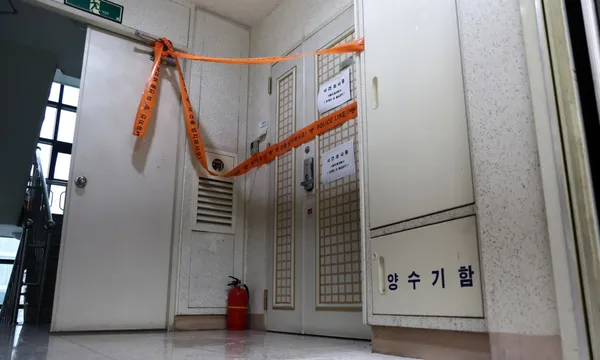 Cảnh sát niêm phong căn hộ của nghi phạm ở phía bắc Seoul vào ngày 21/7 sau khi nhà chức trách phát hiện và tháo dỡ một thiết bị nổ tự chế có bộ hẹn giờ - Ảnh: Yonhap