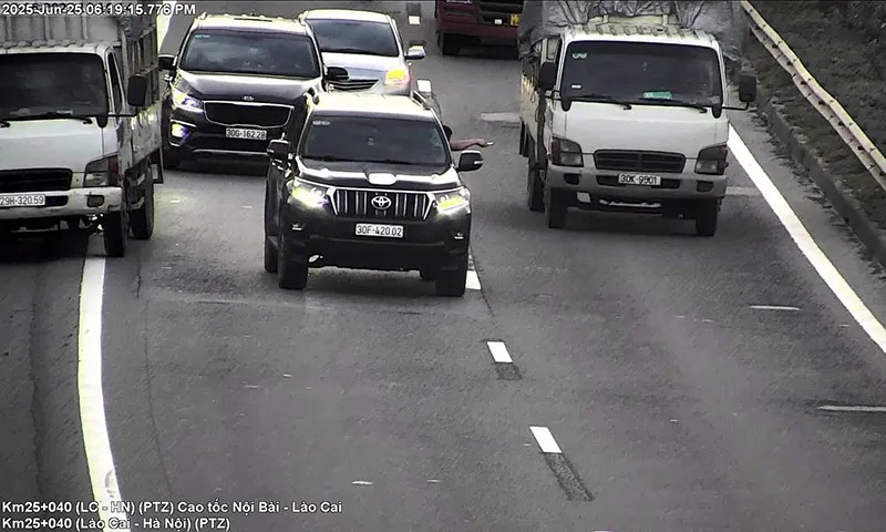 Cụ thể, vào hồi 18h19 ngày 25/6, hệ thống camera giám sát tại Km25+040, đoạn thuộc cao tốc Nội Bài – Lào Cai (hướng Lào Cai đi Hà Nội), phát hiện 3 phương tiện gồm: ô tô con biển số 30F-420.XX, xe tải 30K-95XX và xe tải 29H-320.XX có dấu hiệu chèn ép, đuổi nhau tốc độ cao, gây nguy hiểm cho các phương tiện xung quanh.