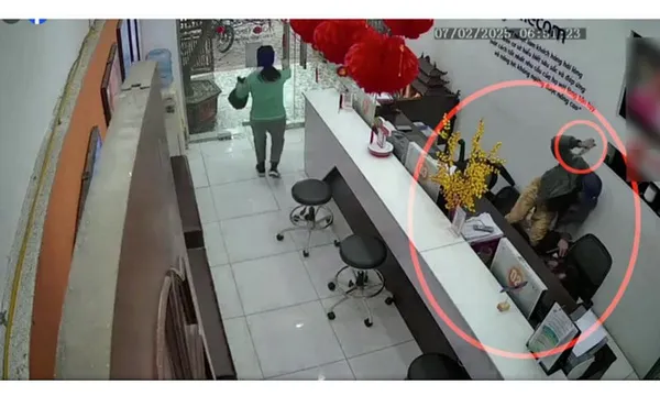 Ngay sau đó, đối tượng rút dao từ trong túi, tiến đến chỗ nữ nhân viên đang ngồi và dí dao vào cổ cô gái.