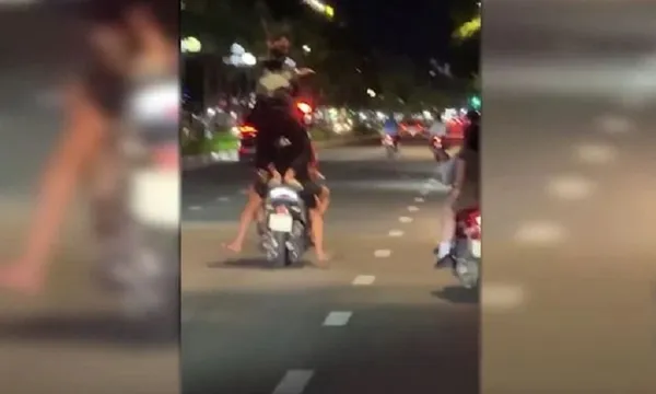 Xe máy chở 4 thanh niên "biễu diễn" trên đường bị quay clip, xử phạt